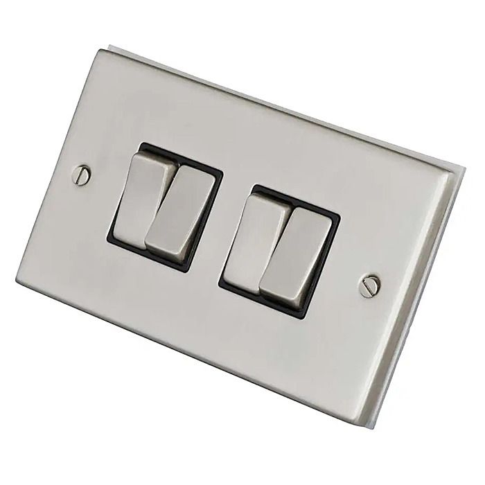 This 4 Gang 2 Way Switch by SelectRic has been designed with style, durability and ease of installation in mind. This Switch has been designed with a stunning satin chrome finish with black inserts to add luxury, beauty and style with functionality to your place of work or home. This Switch has been designed with high quality materials, supplied with a 5 year plate guarantee.