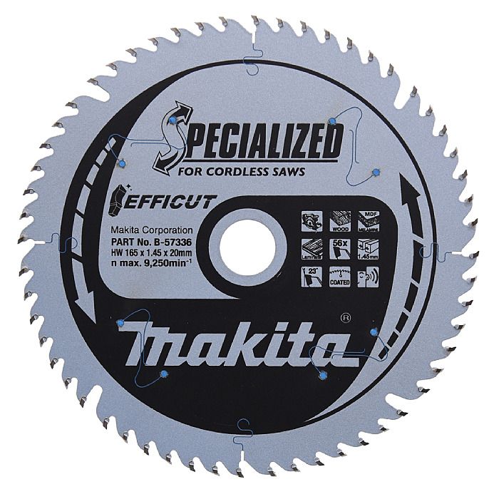 With 56 teeth this blade combines a quality finish with fast material removal. This B-57336 is specialised for cordless saws and is incredibly efficient with it removing material up to 2.5 times faster than a standard saw blade and cuts up to 2.4 times more than a standard blade.