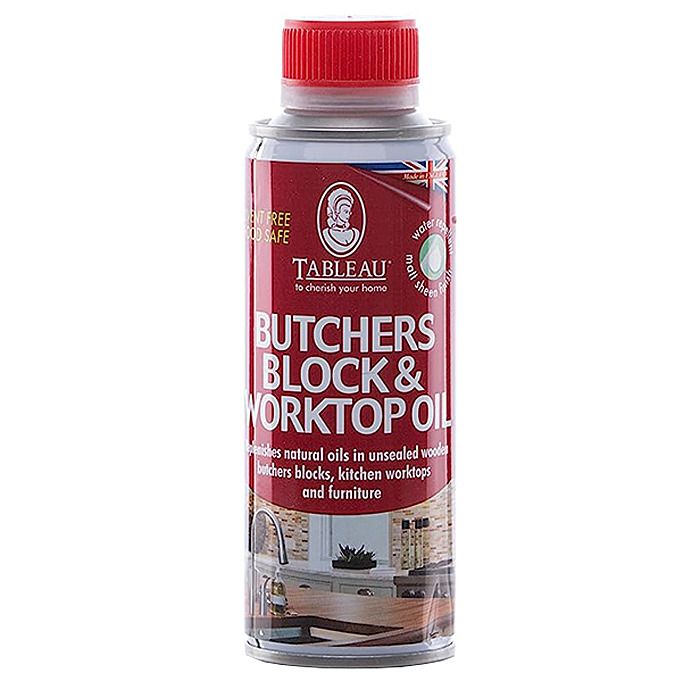 Tableau Butchers Block and Worktop Oil replenishes natural oils in the grain of unsealed wooden butchers blocks, furniture and kitchen worktops and provides a water repellent matt sheen finish. The oil penetrates the surface so it won't chip or flake and won't darken your wood over time like some linseed based products.