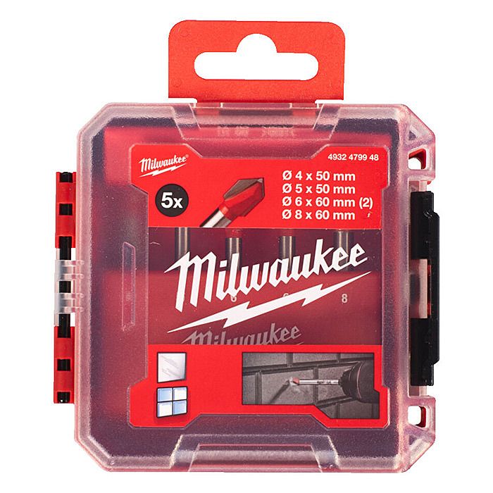 This set from Milwaukee contains 5 drill bits with a carbide head for precision drilling into non-toughened glass, soft to medium hardness tiles and ceramics.