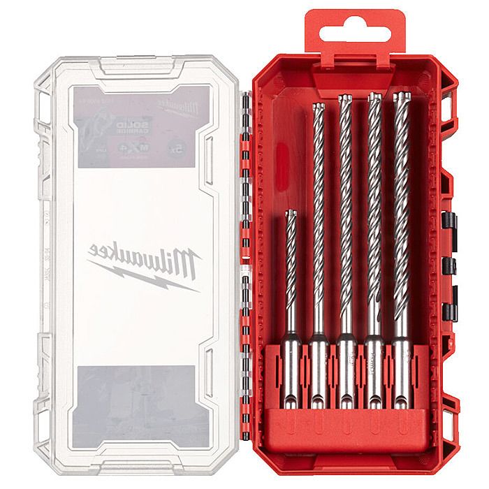 This Milwaukee 5 Piece drilling set contains 5 MX4™ SDS-Plus drill bits engineered for the toughest jobsite drilling applications such as drilling through rebar and high-demanding concrete.