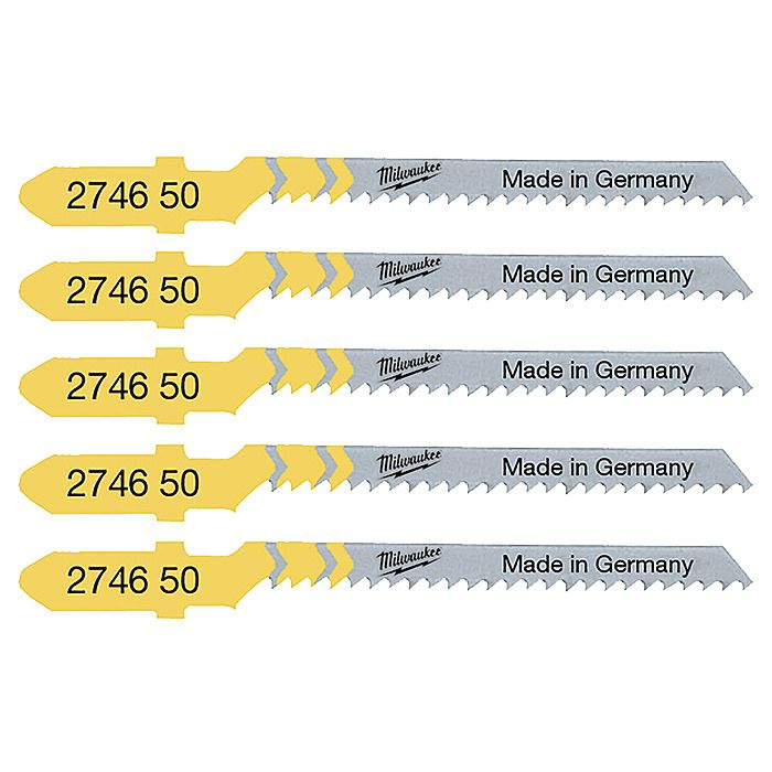 Milwaukee T119BO T-Shank Jigsaw Blades For Wood & PVC 50mm x 2mm Pack of 5 | 4932274650