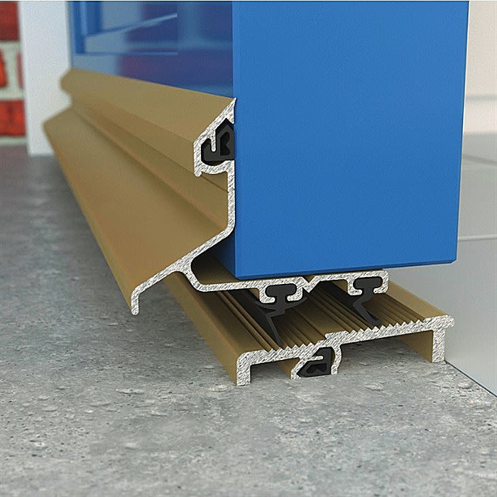 This Kleertread 20 Weatherbar is for both inward and outward opening doors allowing for a clearance of 20mm under the door. Suitable for moderate exposer, the deflector section is supplied with our weather deflecting end caps protecting from sharp corners and raw edges.